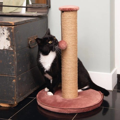 Dieser Kratzbaum aus Designed by Lotte ist ein echter Hingucker im Innenraum. Der Samtstoff verleiht ihm einen trendigen Look. Der Sisal-Kratzbereich lädt Sie zum Kratzen ein, damit Ihre Katze weitergehen kann. An der Stange hängt ein Spielzeug für zusätzlichen Spaß.