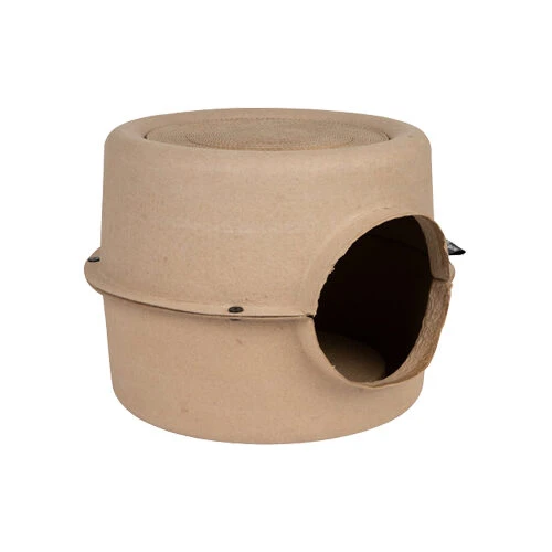 Bijna alle katten zijn gek op lege, kartonnen dozen. Het ziet er alleen niet altijd zo mooi uit; een kartonnen doos in je woonkamer. Daarom heeft District 70 deze Bunker ontworpen. Speciaal voor katten die gek zijn op karton en het spelen van verstoppertje. De bovenkant van deze kartonnen verstopplek is gemaakt van een kartonnen krabmat waar je kat lekker aan kan krabben. In de bunker bevindt zich een bal gemaakt van catnip zodat je kat zich urenlang vermaakt!